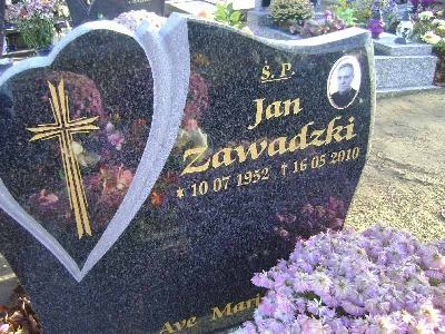 Grób: I.2.22 Zawadzki Jan ur.:10.07.1952 zm.:16.05.2010 Zawadzka Anna ur.:26.07.1925 zm.:28.10.2013 Zawadzki Marcin ur.:07-10-1982 zm.:08-05-2016 |