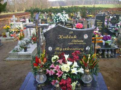 Grób: I.4.5 Kubiak Elżbieta ur.:22.05.1960 zm.:23.04.2010 Myszkowska Zofia ur.:20.10.1926 zm.:24.11.1994 Myszkowski Edward ur.:25.01.1920 zm.:19.10.1980 |
