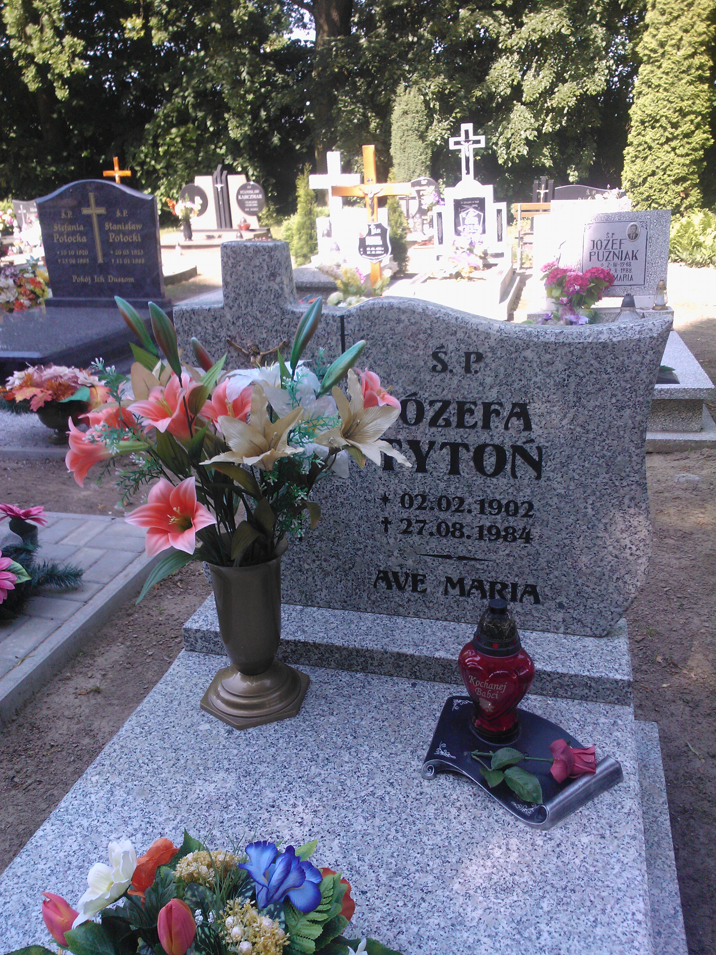 Grób: I.5.30 Tytoń Józefa ur.:02.2.1907 zm.:27.05.184 Łoś Zofia ur.:29-12-1935 zm.:05-05-1996 |