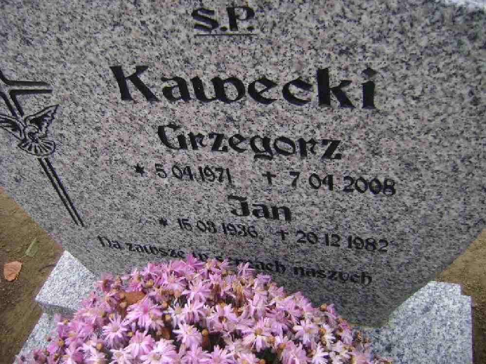 Grób: I.6.29 Kawecki Grzegorz ur.:05.04.1971 zm.:07.04.2008 Kawecki Jan ur.:15.03.1986 zm.:20.12.1982 |