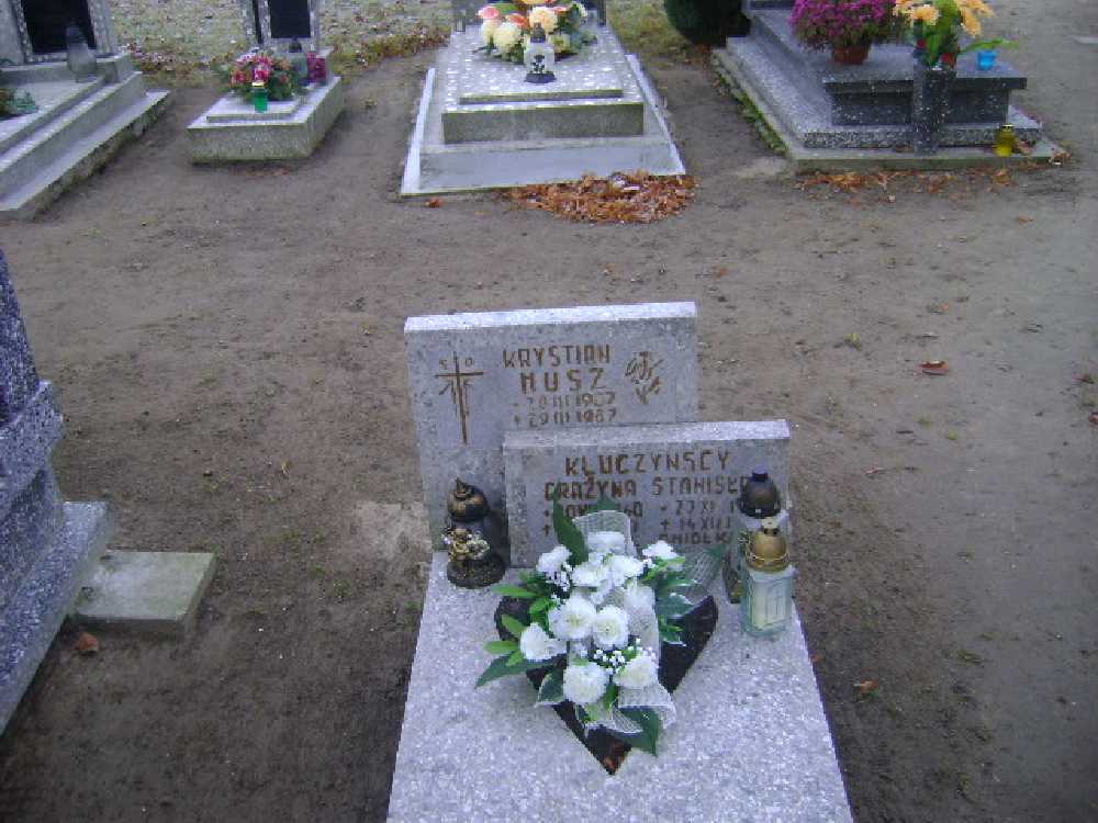 Grób: I.8.7 Kluczyńska Maria ur.:1887 zm.:16.04.1957 Kluczyńska Grażyna ur.:29.07.1960 zm.:29.01.1961 Musz Krystian ur.:20.03.1987 zm.:29.03.1987 |