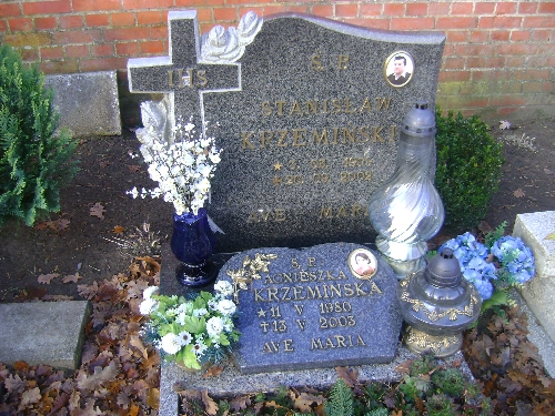 Grób: I.1.34 Krzemińska Agnieszka ur.:11.05.1980 zm.:13.05.2003 Krzemiński Stanisław ur.:03.03.1959 zm.:20.09.2002 |