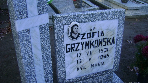 Grób: I.10.8 Grzymkowska Zofia ur.:21.07.1995 zm.:02.09.1989 Grzymkowski Henryk ur.:06-11-1924 zm.:21-04-1999 |