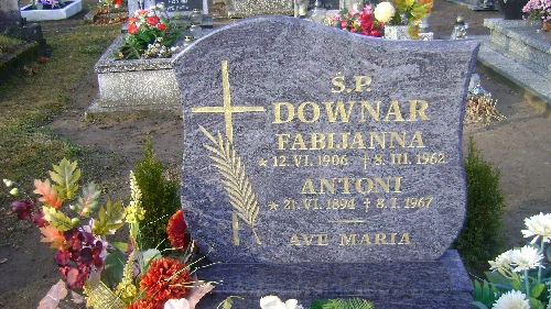 Grób: I.11.10 Downar Fabijanna ur.:12.06.1906 zm.:08.03.1962 Downar Antoni ur.:21.06.1894 zm.:08.01.1967 |