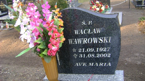 Grób: I.18.11 Wawrowski Wacław ur.:21.09.1927 zm.:31.08.2002 Wawrońsaka Irena ur.:15-02-1927 zm.:10-03-2022 |