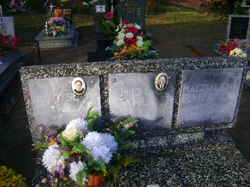Grób: I.4.14 Baranda Magdalena ur.:03.04.1887 zm.:08.06.1964 Gawlas Władysław ur.:11.01.1914 zm.:02.10.1992 Gawlas Michał ur.:03.09.1893 zm.:03.12.1967 Niedźwiecka Izabella ur.:24-02-1986 zm.:18-03-1986 |