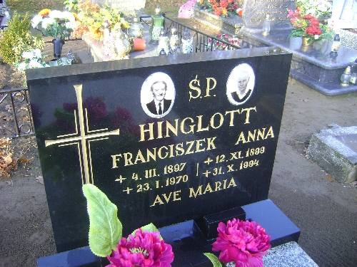 Grób: I.4.28 Hinglott Franciszek ur.:04.03.1897 zm.:23.01.1970 Hinglott Anna ur.:12.11.1899 zm.:31.10.1994 |