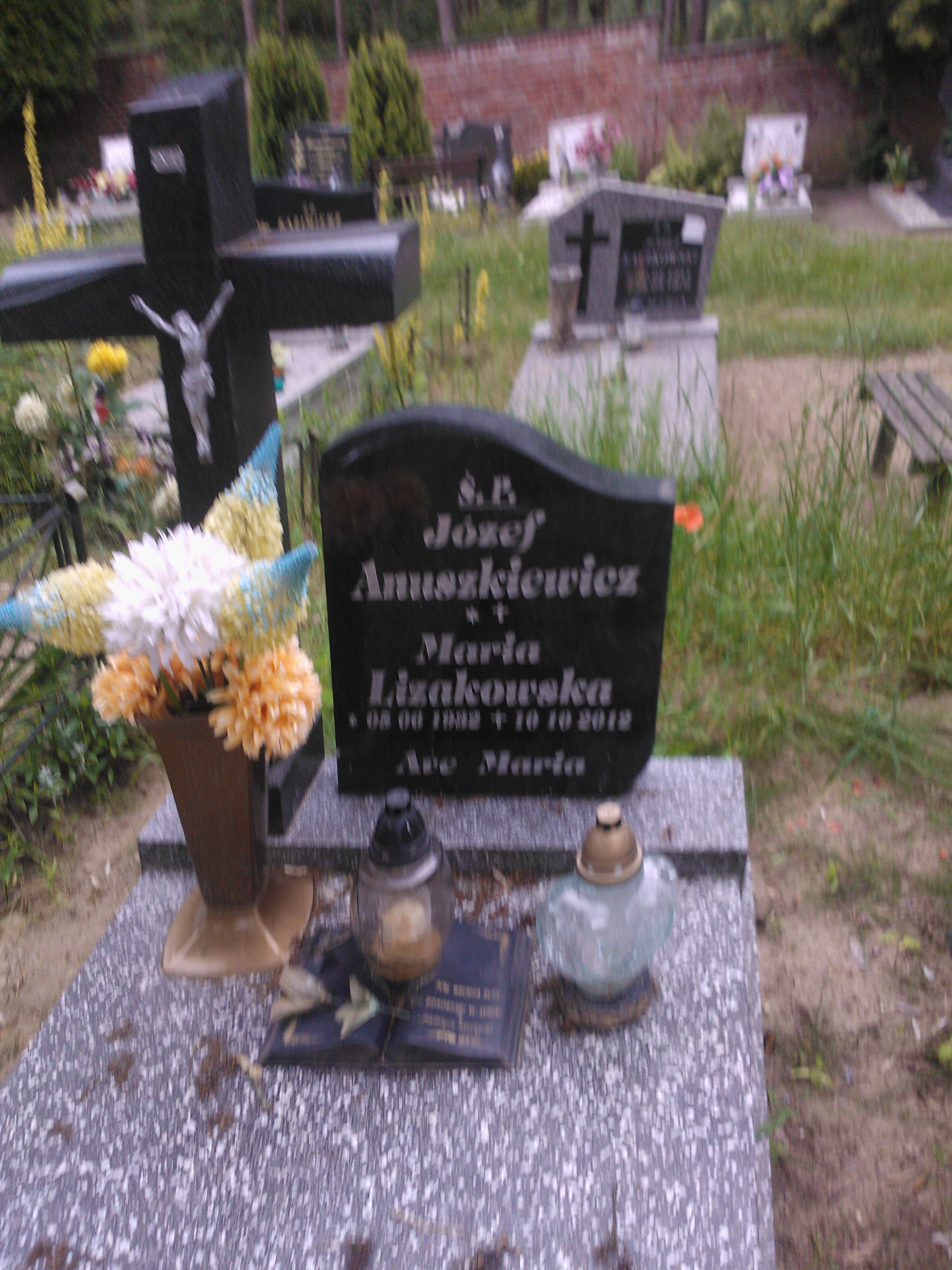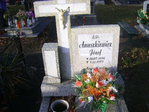 Grób: I.4.37 Anuszkiewicz Józef ur.:26.07.1896 zm.:01.12.1977 Lizakowska Maria ur.:05-06-1932 zm.:10-10-2012 Lizakowski Ryszard ur.:09-01-1940 zm.:12-03-2021 |
