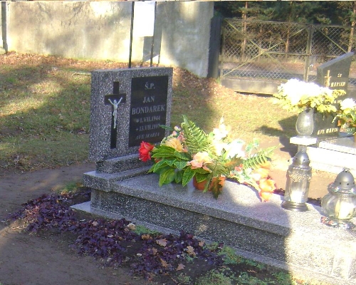 Grób: I.4.45 Bondarek Jan ur.:01.07.1944 zm.:13.07.1997 Bondarek Piotr ur.:05-12-1970 zm.:07-04-2023 Bondarek Maria ur.:27-08-1949 zm.:03-09-2025 |
