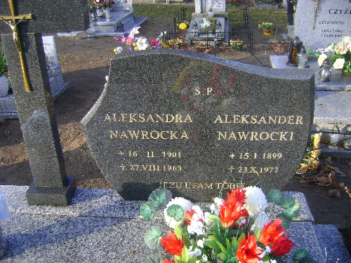 Grób: I.5.37 Nawrocka Aleksndra ur.:16.02.1901 zm.:27.08.1969 Nawrocki Aleksander ur.:15.01.1899 zm.:23.10.1977 |