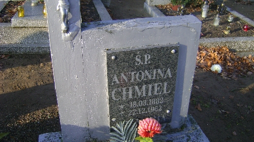 Grób: I.8.39 Chmiel Antonina ur.:18.03.1882 zm.:33.23.1962 |