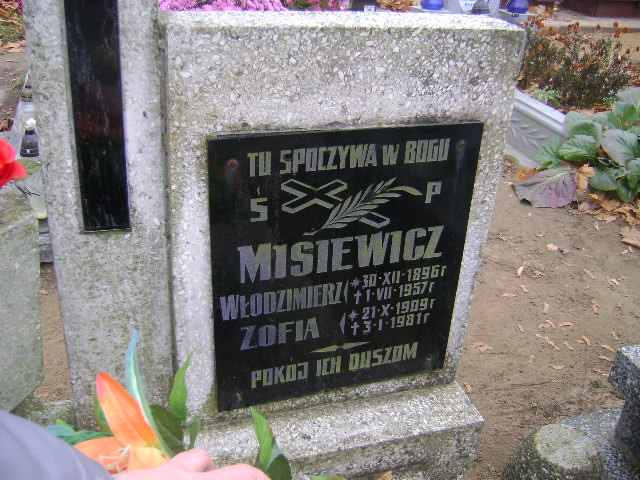 Grób: I.14.2 Misiewicz Włodzimierz ur.:30.12.1896 zm.:01.07.1957 Misiewicz Zofia ur.:21.10.1909 zm.:03.01.1981 |