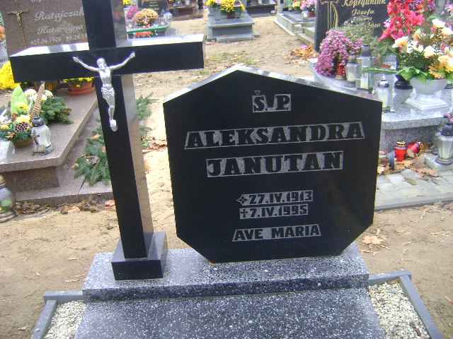 Grób: I.18.1 Janutan Aleksandra ur.:27.04.1913 zm.:07.04.1995 Janutan Bronisława ur.:27-02-1947 zm.:23-09-2016 |