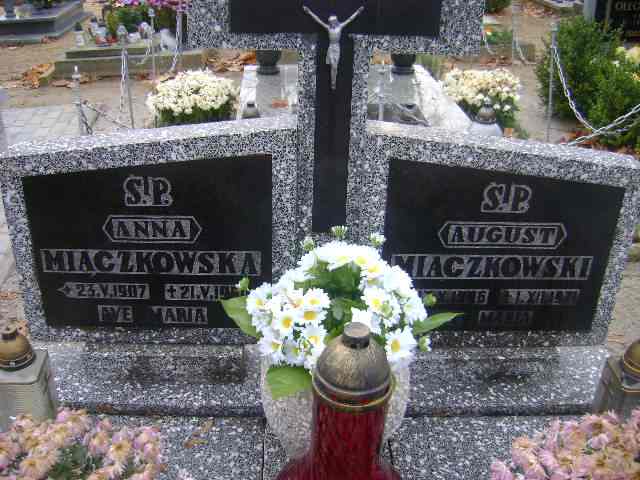 Grób: I.18.3 Miączkowska Anna ur.:23.05.1907 zm.:21.05.1991 Miączkowski August ur.:17.10.1896 zm.:01.12.1971 |