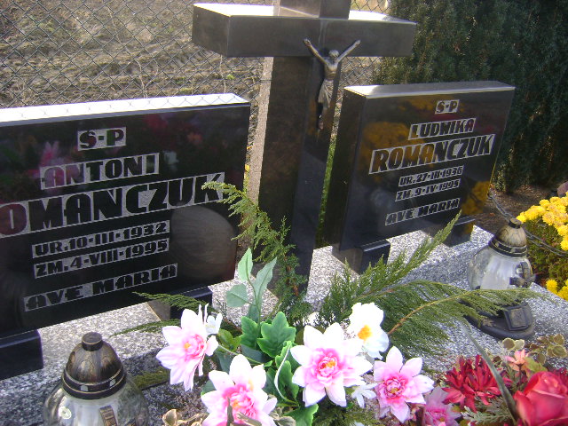 Grób: I.2.19 Romańczuk Antoni ur.:10.03.1932 zm.:04.08.1995 Romańczuk Ludwika ur.:27.03.1936 zm.:09.04.1995 |