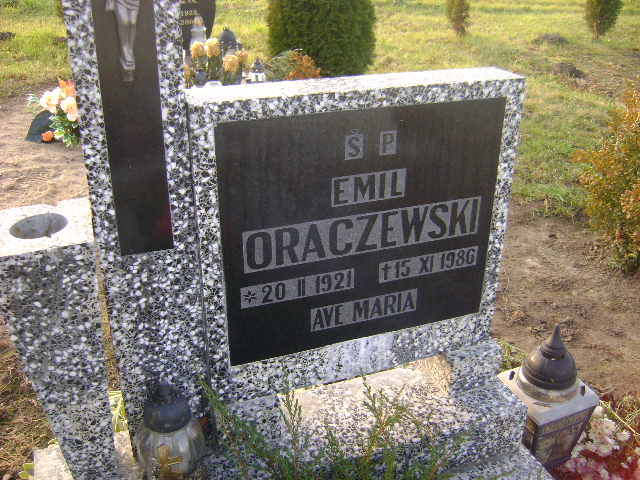 Grób: I.4.15 Oraczewski Emil ur.:20.02.1921 zm.:15.11.1986 Oraczewski Zdzisław ur.:13-04-1952 zm.:25-03-2019 |