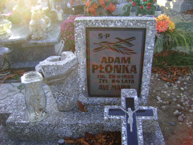 Grób: I.7.36 Płonka Adam ur.: zm.:26.11.1966 żył 84 lata |