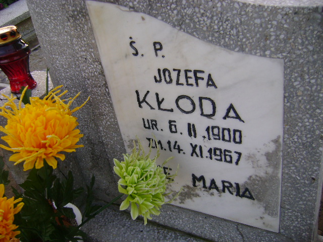 Grób: I.7.48 Kłoda Józefa ur.:06.02.1900 zm.:14.11.1967 |