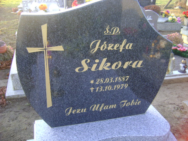 Grób: I.7.56 Sikora Józefa ur.:28.03.1887 zm.:13.10.1979 |