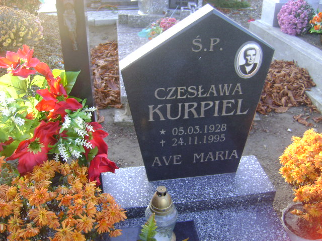 Grób: I.8.38 Kurpiel Czesława ur.:05.03.1928 zm.:24.11.1995 |
