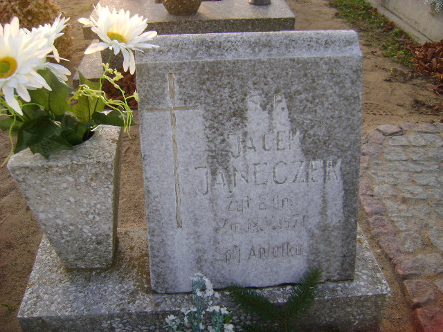 Grób: I.8.54 Janeczek Jacek ur.:10.05.1971 zm.:18.05.1971 |