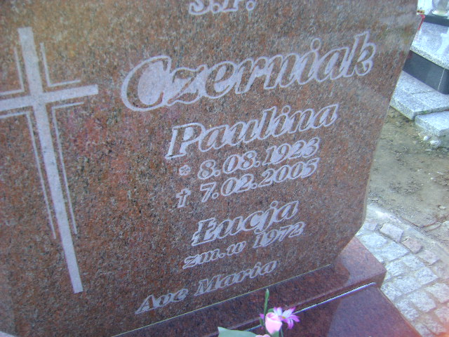 Grób: I.8.55 Czerniak Paulina ur.:08.08.1923 zm.:07.02.2005 Czerniak Łucja ur.: zm.:1972 |