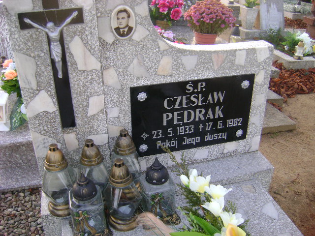 Grób: I.9.52 Pędrak Czesław ur.:23.05.1933 zm.:17.06.1982 Pędrak Teresa ur.:14-11-1933 zm.:20-02-2013 |