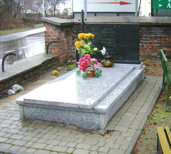 Grób: I.1.1 N: 50° 43' 20.7594" E: 23° 15' 41.3750" Paluch Julia ur.:1901 zm.:1974 Paluch Stefan ur.:1905 zm.:1984 Paluch Jerzy ur.:1934 zm.: |